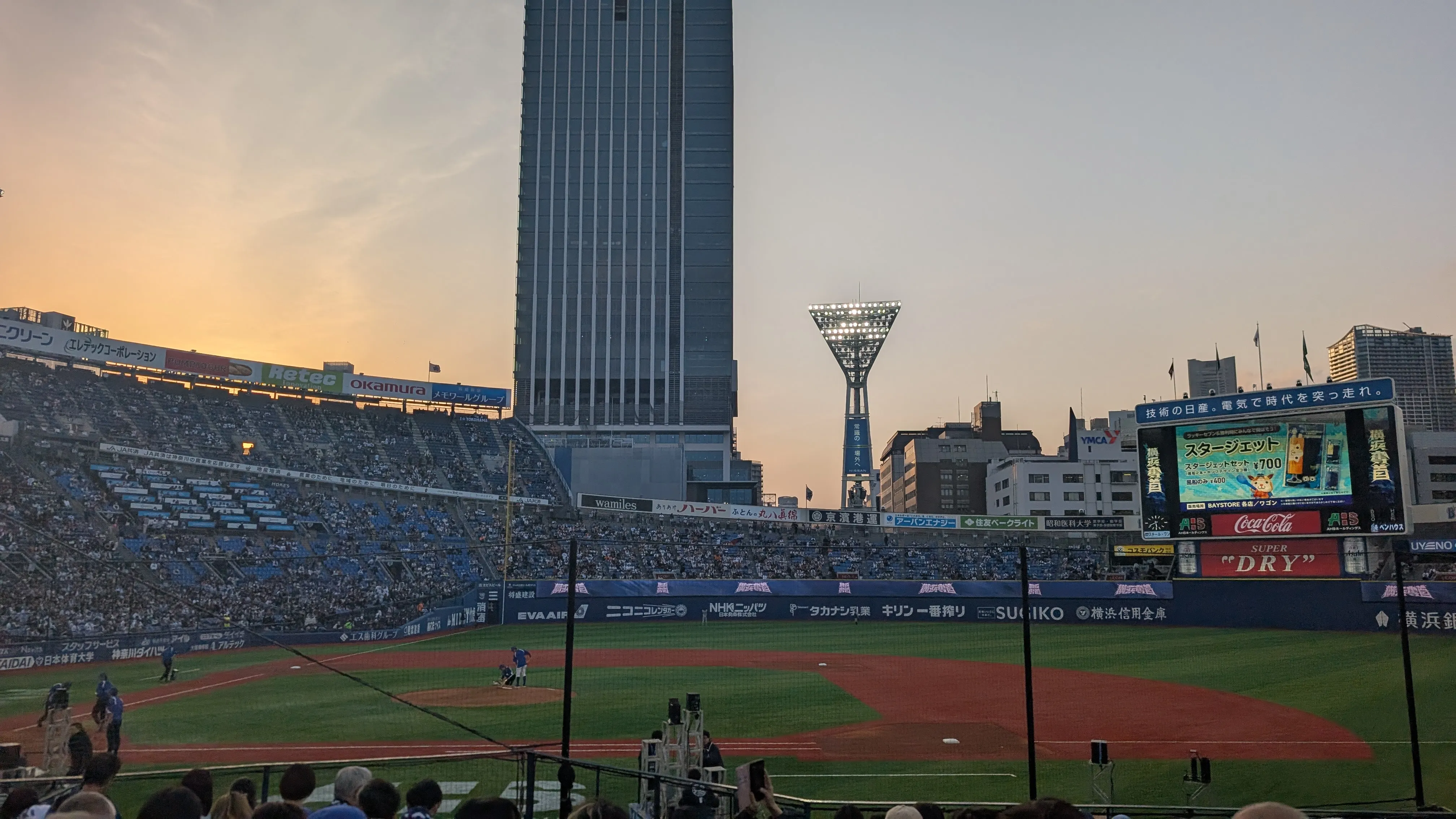 On Wednesday we got the train down to nearby city Yokohama for a baseball game. My first time at one – good fun!