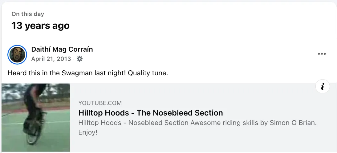 Funnily enough I saw this FB memory from this day 2013 – just after I heard the tune in Swagman. Aussie bar introducing me to Aussie tunes 🤙