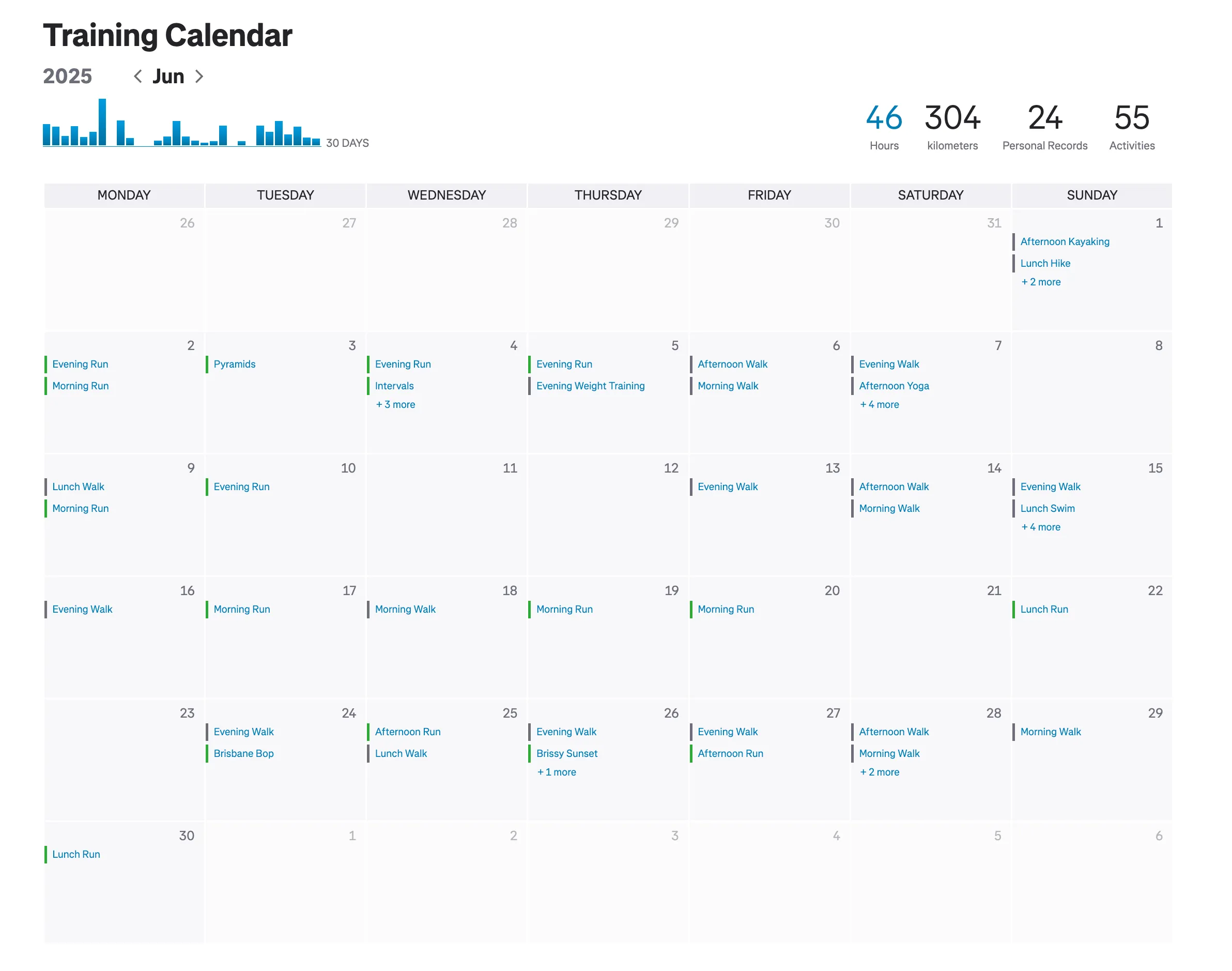 Calendar from Strava
